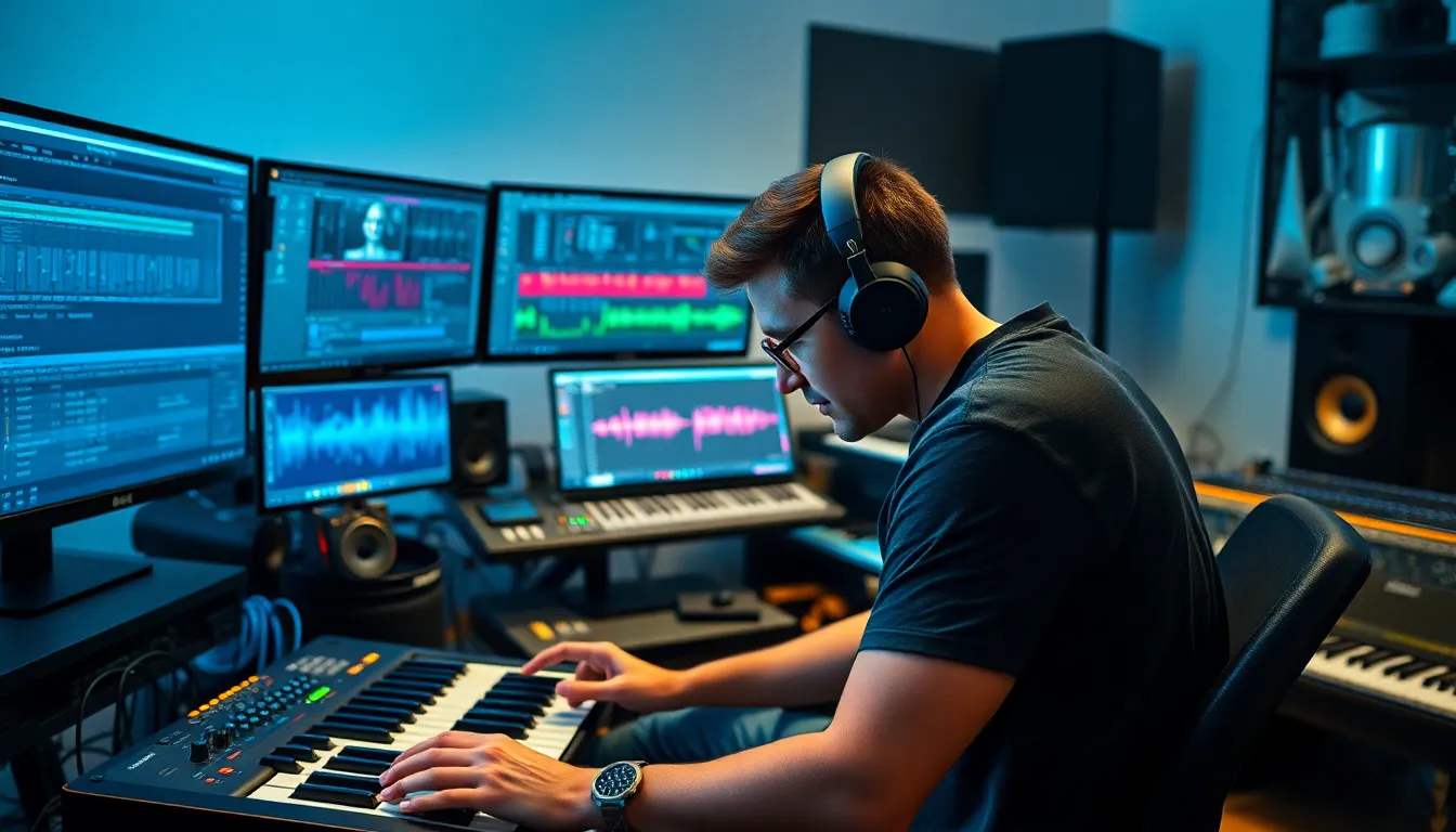 Artificial intelligence (AI) significantly reshapes music composition and production. AI-driven tools analyze vast data sets, enabling automated music generation and personalized recommendations. These systems assist composers by suggesting chord progressions, melodies, and arrangements, streamlining the creative process. For example, platforms like OpenAI’s MuseNet can craft complete compositions across various genres in a matter of minutes. Additionally, AI enhances the mixing and mastering processes, allowing speedier production with higher quality outputs.